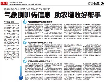 他打了个比喻:“两系统”就像工厂,所有数据由区气象局统一生产,县气象局要做的是进行本地化加工。“一平台”如同商店,将工厂的产品进行深加工、包装、销售,推送至农业、旅游、交通、国土等部门,开展针对性服务。